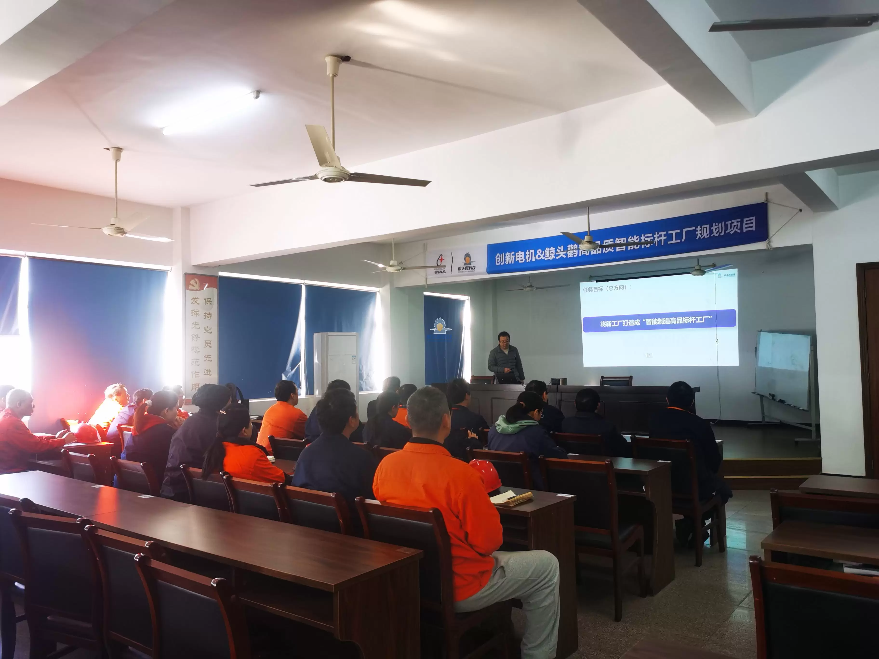启动会上,创新电机沈总及相关负责人,与鲸头鹳事业部总监王老师及项目成员就合作内容及项目需求进行沟通,明确本次规划项目旨在打造创新高品质智能标杆工厂。鲸头鹳科技将从深度调研及分析、车间精益布局、车间标准化及高阶目视化、落地支持辅导等多个维度进行全流程服务。