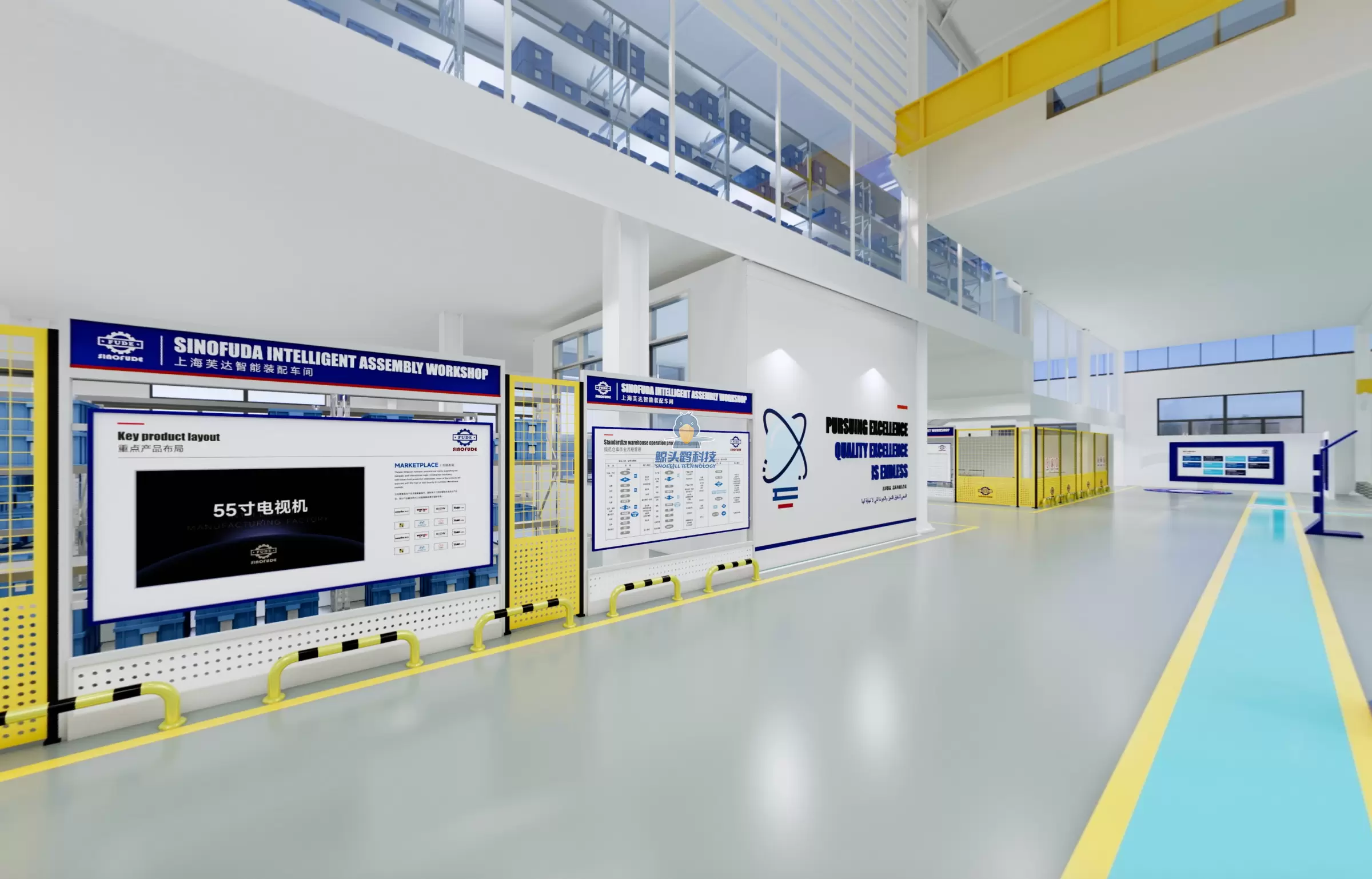 3.规划设计高阶功能区,从安全、生产、管理、参观等纬度全面提升工厂参观体验与整体形象。